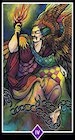 La poderosa figura autoritaria de esta carta es, claramente, el maestro de su propio destino. Lleva en el hombro el emblema del sol, y la antorcha que sostiene en la mano derecha simboliza la luz de su propia verdad ganada a duras penas.