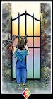 El niño pequeño de esta carta está parado de pie frente a una reja, mirando a través de ella. Es tan pequeño y está tan convencido de que no puede pasar que es incapaz de ver que la cadena que aguanta la reja no está cerrada. Todo lo que tiene que hacer es abrirla.